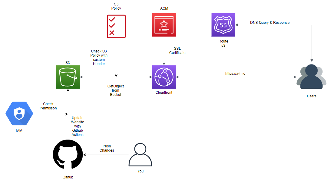 Answer: It is made with Hugo, Amazon Web Services and Github.